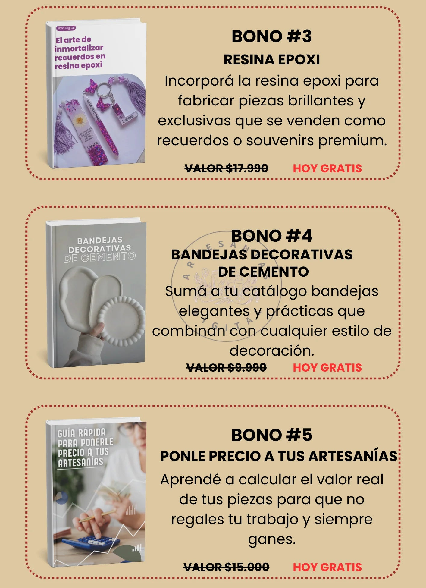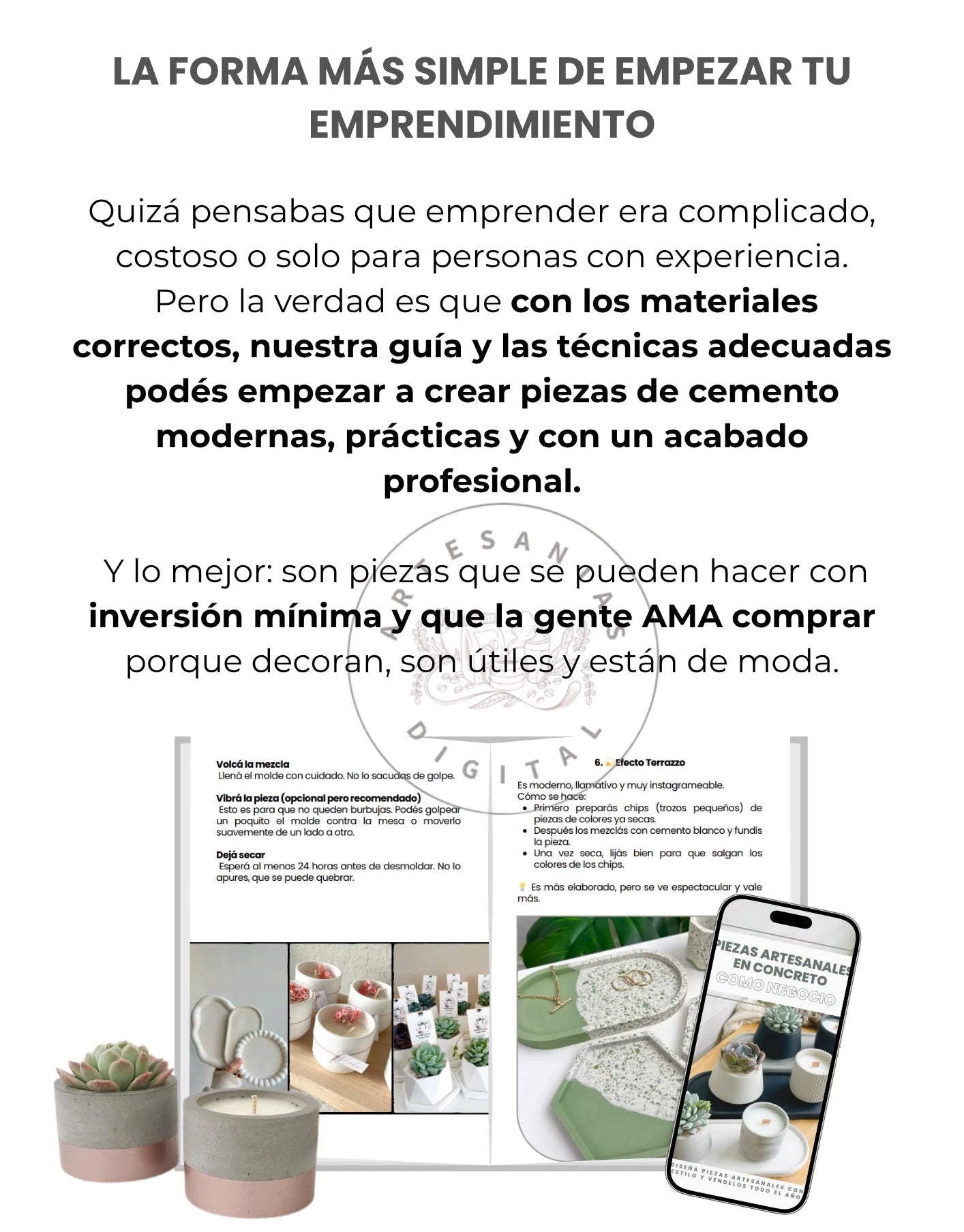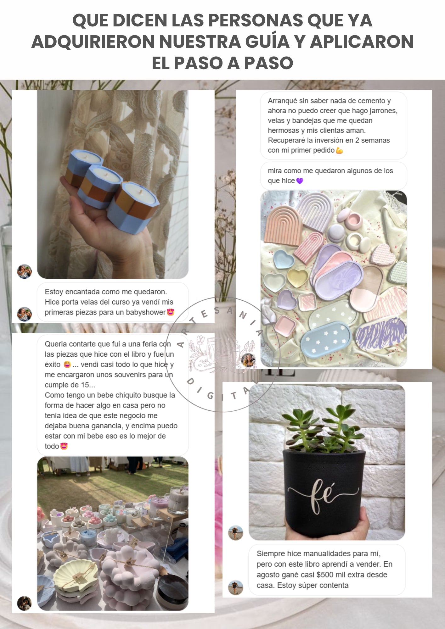 Las artesanías de cemento están de moda: son modernas, elegantes y útiles. Además, con los bonos extra aprendés a poner precios justos y a mostrar tus piezas de forma atractiva.