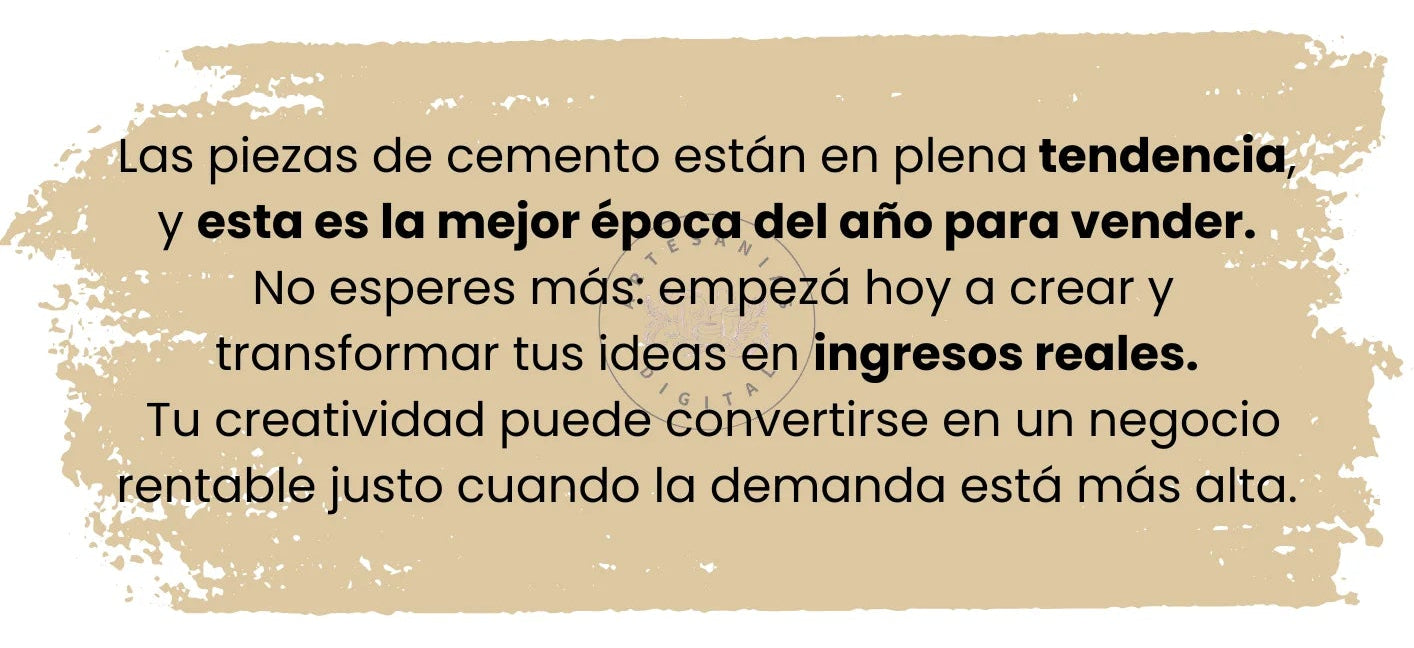 Muy poco. Con una inversión mínima en cemento y algunos moldes podés crear tus primeras piezas y recuperar la plata rápido.